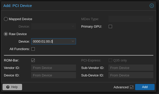 Add q35 as the machine type within Proxmox hardware settings of your configured virtual machine