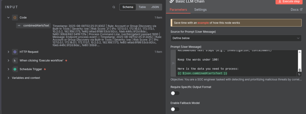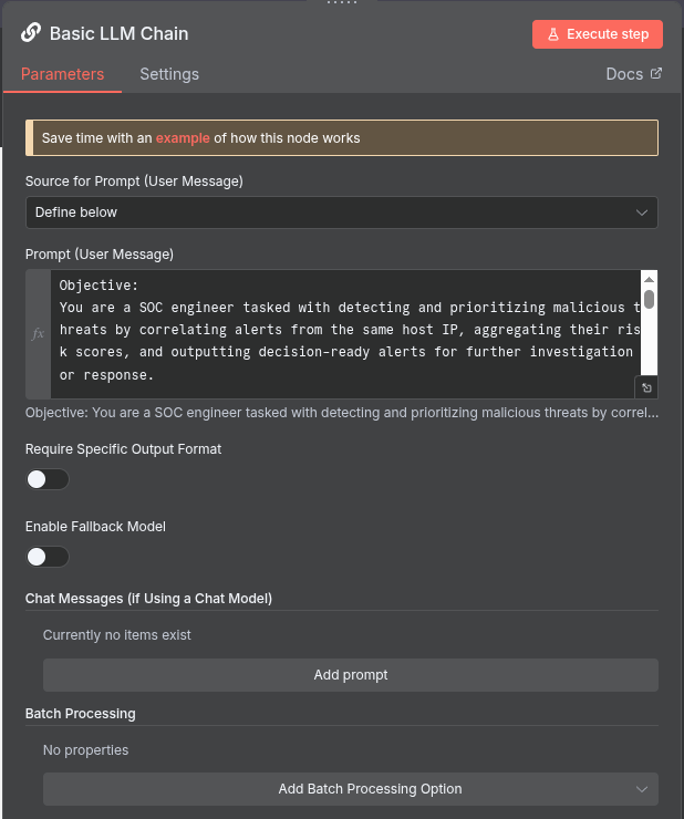 After completing that step, select the “Basic LLM Chain” node and add a prompt of your choice.