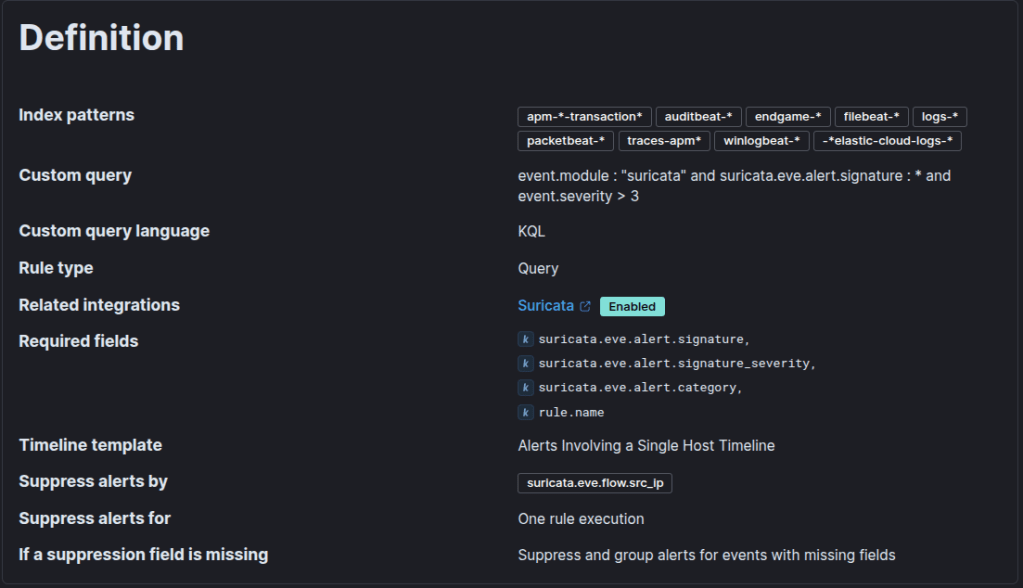 NOTE: Keep in mind that, in order for the alerts API to pull in Zeek and Suricata alerts, you need to configure SIEM rules to pull the data into the alerts index. This will look different for every environment. Elastic Defend, by default, will pull the endpoint alerts into the appropriate index.