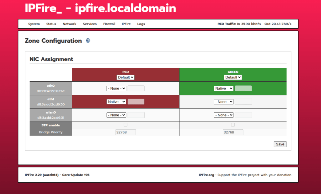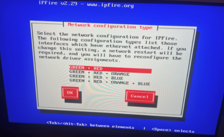 Because we want to go inline with this firewall, you will need to configure two networks using the red and green interface.