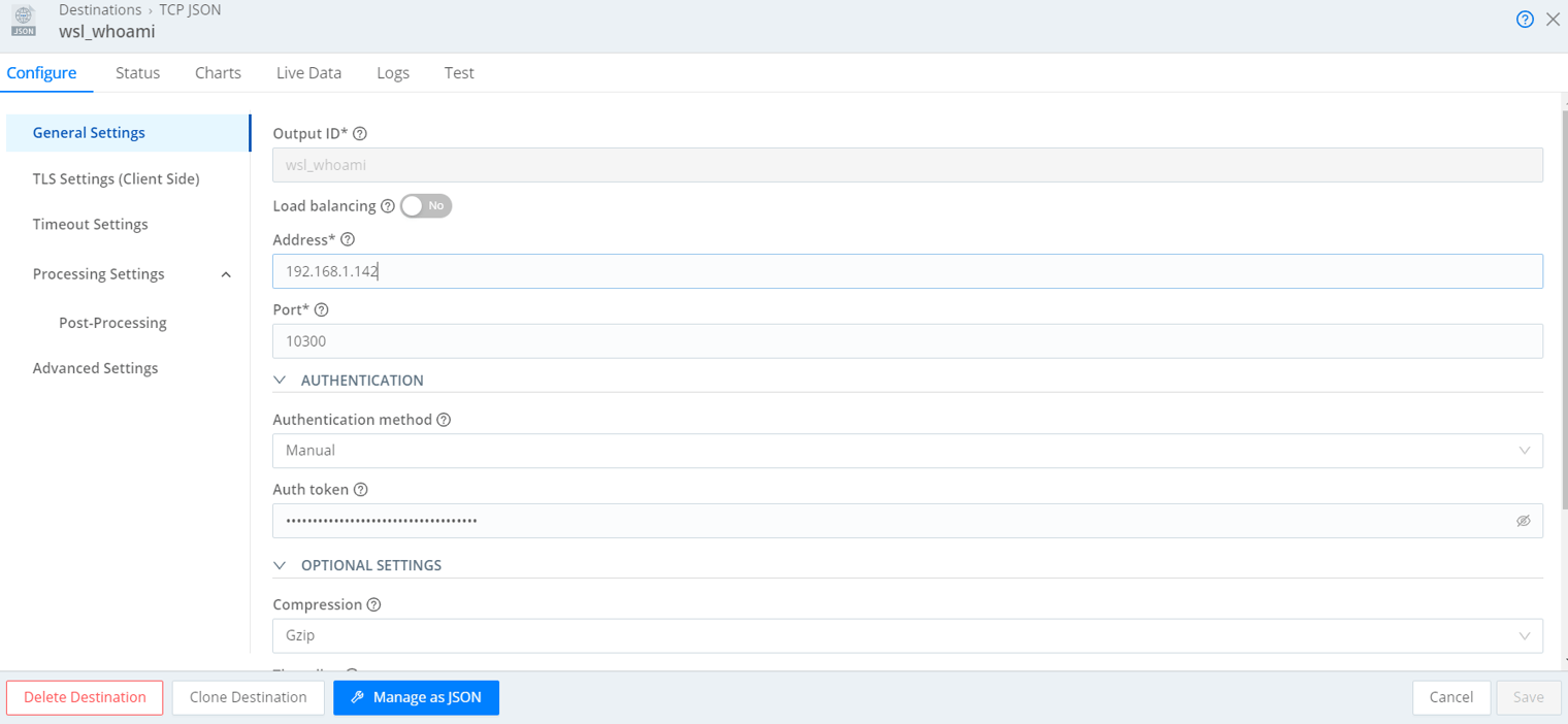 In our Cribl Edge instance, we can add a destination to ensure the logs get sent to the Cribl Stream instance. Fill out the form accordingly, making sure to use the same authentication token generated in the Cribl Stream instance.